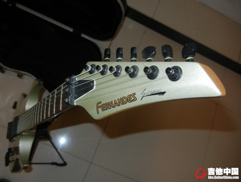 介绍下琴吧。配置是单单双,实际听上去是俩小双一个大双。双摇,颤音系统与fernandes 25th是一样的。22品,玫瑰木指板,枫木琴颈,软枫木琴体。琴头较为有特点,不同一般的fernandes。琴体形状有点像JS系列但是比JS更犀利一点。手感上琴颈很窄,很薄但是不扁,不像日产IBZ那样扁扁的(并不是说IBZ的坏话,手感各有所好,只是举例)。不管你手是大是小这只琴都很好驾驭。无限延音系统平时练习什么的不是很起眼,玩玩的话挺有意思的,不过演出时候无限延音的效果非常好用。